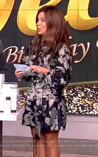 on The View on ABC was spotted wearing this floral print tie waist dress on The View on Oct 06 2023's episode. 's Dress is the Dailey Dress by Tanya Taylor.