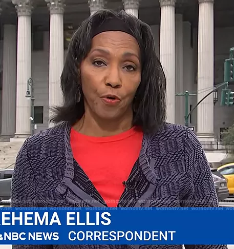 on NBC News Daily on NBC was spotted wearing this gray cardigan on NBC News Daily on Oct 06 2023's episode. 's Sweater is the Knitted Blue Moto Jacket by Loft.