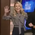 Saint Laurent Lavalliere Neck Blouse worn by Kelly Ripa on Live with Kelly and Mark