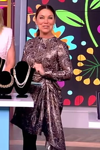 Gretta Monahan turned heads on "The View" with her floral metallic mini dress. Designed by Tanya Taylor, the dress sparkled with both its metallic shine and floral design. It had long sleeves, which complemented the shorter length nicely. A special touch was the side drape detail, adding a flattering twist to the look. For fans wanting to get a similar stylish vibe, the dress is up for grabs at Neiman Marcus. It's a perfect blend of fun and elegance!