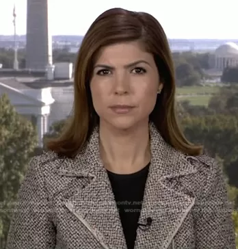 on NBC News Daily on NBC was spotted wearing this grey tweed jacket on NBC News Daily on Oct 03 2024's episode. 's Jacket is the Tweed Jacket by Rebecca Taylor.