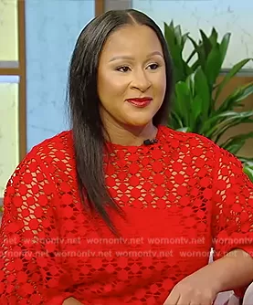 On the "Tamron Hall Show", Angela Benton made a striking appearance that seamlessly blended boldness with classic elegance. Cloaked in a firetruck red guipure lace top, her ensemble captivated viewers with its vibrant hue and intricate lace detailing. This masterpiece, a creation of designer Akris Punto, stood out as a testament to the brand's commitment to craftsmanship and sophistication. The intensity of the red was a head-turner, drawing eyes and commanding attention. Moreover, for viewers eager to emulate Angela's impeccable style, the top is available for purchase at renowned retailers such as Saks Fifth Avenue and Neiman Marcus. Angela's choice was more than just a fashion statement; it was an embodiment of confidence, poise, and timeless allure.
