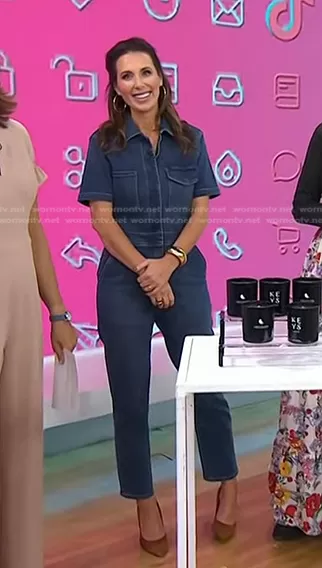 on Today on NBC was spotted wearing this short sleeve denim jumpsuit on Today on Oct 13 2023's episode. 's Jumpsuit is the Rebel Jumpsuit by Rivet Utility.