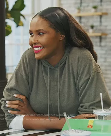 Ubah Hassan on The Real Housewives of New York City on Bravo was spotted wearing this green hoodie on The Real Housewives of New York on episode 'A Night at Swingers' (14x13) in Oct 2023. Ubah's Sweater is the Marthe Cashmere Hoodie by Sandro.