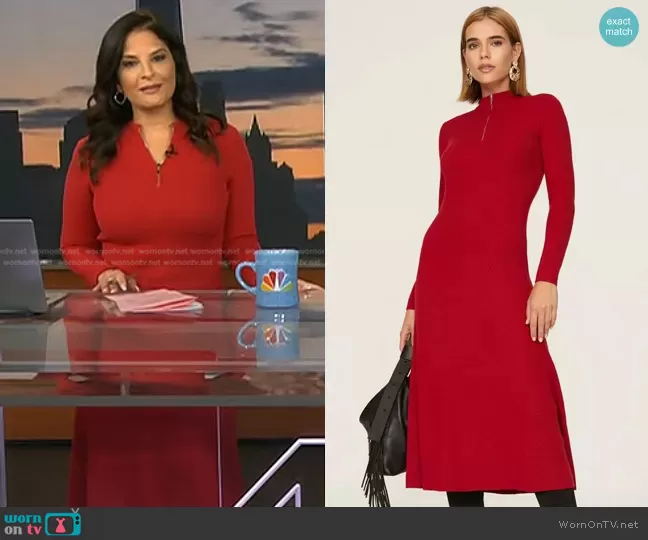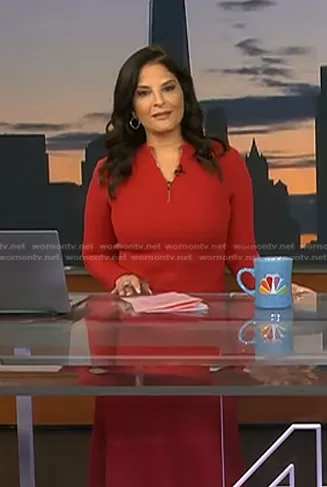 Darlene Rodriguez on Today on NBC was spotted wearing this red quarter zip dress on Today on Oct 16 2023's episode. Darlene's Dress is the Quarter Zip Dress in Red by Jason Wu Collective.