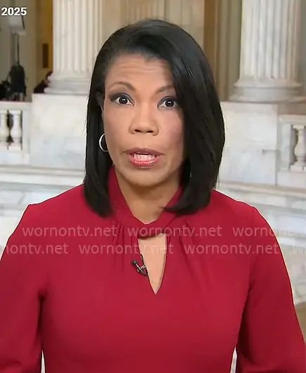 Nikole Killion on CBS Mornings on CBS was spotted wearing this red keyhole dress on CBS Mornings on Oct 22 2025's episode. Nikole's Dress is the Twist Crew Neck Sheath Dress in Cranberry by Calvin Klein .