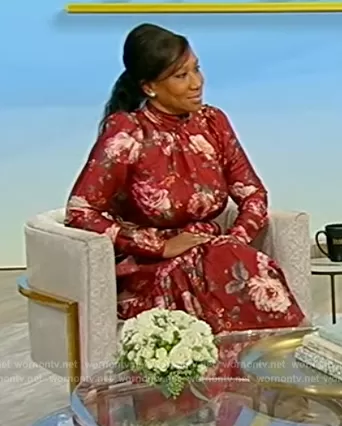 Nicole Avant recently graced the "Tamron Hall Show" in a breathtaking burgundy floral print dress by Zimmermann, an ensemble that perfectly encapsulated the transition from summer to fall. The dress, notable for its rich, deep color palette interspersed with vibrant floral motifs, exuded a sense of romantic nostalgia while affirming its contemporary charm with statement puff sleeves. The high neckline added a touch of regal elegance, often reserved for high fashion, and worked in harmony with the dress's midi length to create a silhouette that was both commanding and poised. Perhaps the most defining feature was the scarf tie at the waist, a delicate addition that introduced an element of whimsy, cinching the waist for a flattering profile. This Zimmermann creation wasn't just a garment; it was a testament to the intricate artistry of fashion design, offering a fusion of bold and subtle details. Available for purchase, the dress bridges the gap between the runway and the viewer's wardrobe, epitomizing accessible luxury and inviting admirers to embrace their stylistic impulses with confidence and grace.