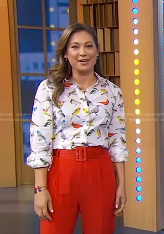 Lesley Evers Kathryn Blouse in Bird worn by Ginger Zee on Good Morning America
