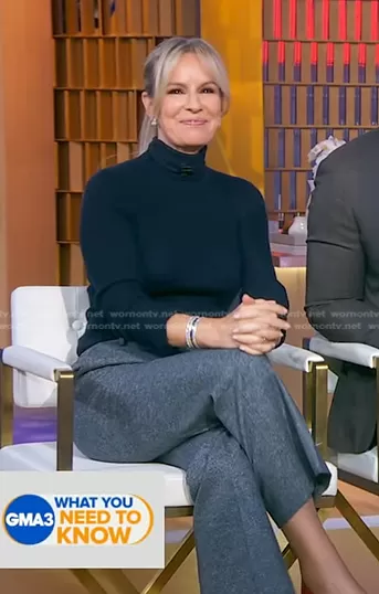 Dr. Jennifer Ashton on Good Morning America on ABC was spotted wearing this grey cropped flare pants on Good Morning America on Oct 17 2023's episode. Jennifer's Pants is the Fossett Tweed Flare Leg Pants by Altuzarra.