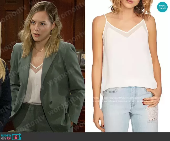 In a striking departure from her recent behavior, Hope on "The Bold and the Beautiful" showcased a professional and polished side of herself in a sage green suit. The ensemble, designed by Maje, beautifully marries professionalism with a touch of edginess, thanks to the chic chain belt she stylishly draped at the back. Completing the look, Hope paired the blazer with its matching pants, presenting a harmonious, tailored silhouette. For those inspired by her style, the suit is currently available for purchase.