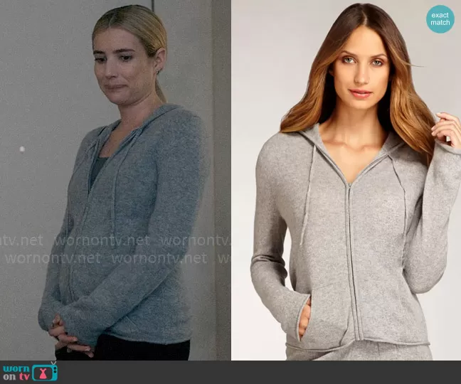 Anna Victoria Alcott (played by Emma Roberts) on American Horror Story on FX was spotted wearing this grey zip knit hoodie on American Horror Story on episode 'Preech' (12x05) in Oct 2023. Anna's Sweater is the Cashmere Hoodie by Arlotta.