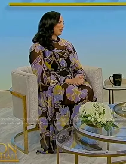 on Tamron Hall Show on ABC was spotted wearing this floral print sheer dress on Tamron Hall Show on Oct 19 2023's episode. 's Dress is the Kent Dress by Diane von Furstenberg.