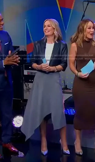 Dr. Jennifer Ashton on Good Morning America on ABC was spotted wearing this grey asymmetric skirt on Good Morning America on Oct 19 2023's episode. Jennifer's Skirt is the Asymmetric Wool-Blend Flannel Midi Skirt by Akris.