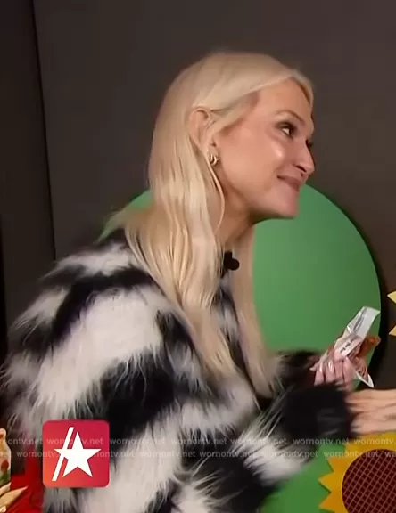 on Access Hollywood on NBC was spotted wearing this Zanna Roberts zebra stripe fur sweater on Access Hollywood on Nov 23 2023's episode. 's Sweater is the Suri Alpaca-Blend Zebra Cropped Sweater by Monse.
