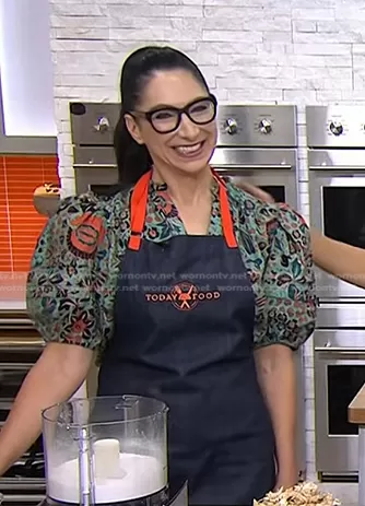 on Today on NBC was spotted wearing this blue floral puff sleeve dress on Today on Oct 20 2023's episode. 's Dress is the Olina Dress by Ulla Johnson.