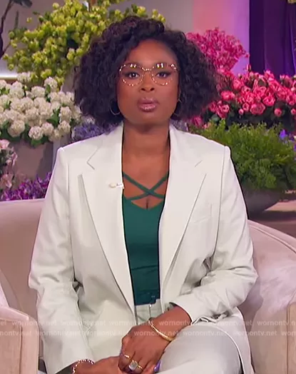Jennifer Hudson on The Jennifer Hudson Show on FOX was spotted wearing this mint blazer and pants on The Jennifer Hudson Show on Oct 21 2023's episode. Jennifer's Blazer is the Naomi Blazer by Reiss . Jennifer's Pants is the Naomi Wide Leg Trousers by Reiss.