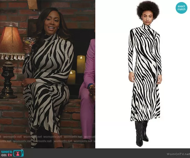 Lola Carmichael (played by Simone Missick) on All Rise on OWN was spotted wearing this zebra stripe dress on All Rise on episode 'Passionfruit' (3x16) in Oct 2023. Lola's Dress is the Adair Dress by Ronny Kobo.