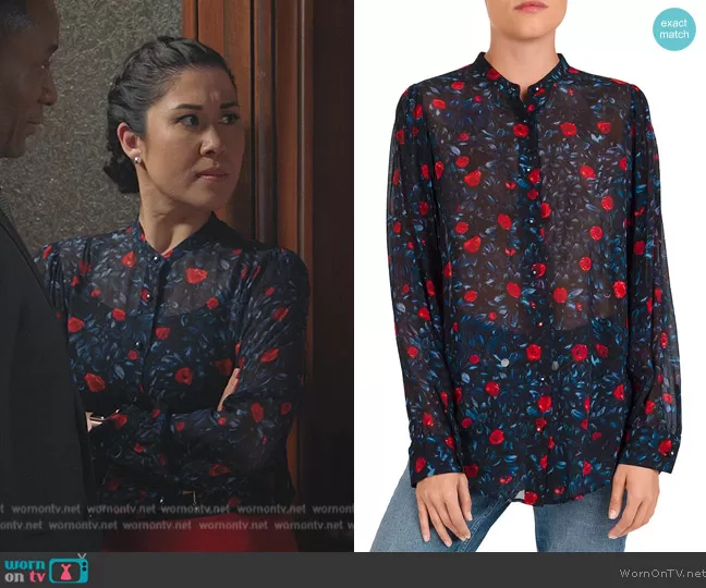 Sherri Kansky (played by Ruthie Ann Miles) on All Rise on OWN was spotted wearing this floral print shirt on All Rise on episode 'Passionfruit' (3x16) in Oct 2023. Sherri's Top is the Poison Roses Floral-Print Shirt by The Kooples.