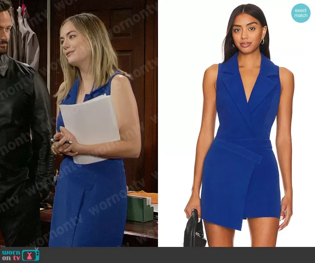 Hope showcased her impeccable fashion sense on 'The Bold and the Beautiful', stepping out in a chic blue sleeveless wrap dress. The Brodie Dress by Lovers and Friends, with its blazer-style design, proved to be not just stylish but also perfect for an office setting. This sleeveless ensemble reaffirms Hope's status as a trendsetter on the soap opera, blending sophistication with a modern touch. Fans and fashion enthusiasts alike are sure to be inspired by this latest attire.
