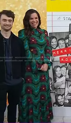 on Today on NBC was spotted wearing this green floral dress on Today on Oct 26 2023's episode. 's Dress is the Visconti Dress in Ashbury in Sable by La DoubleJ.
