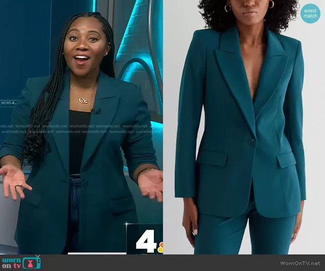 Express One Button Blazer in Deep Teal worn by Kay Angrum on NBC News Daily