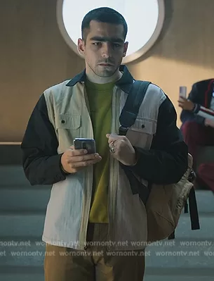 (played by Omar Ayuso) on Elite on Netflix was spotted wearing this colorblock jacket on Elite on episode 'Bling-Bling' (7x03) in Oct 2023. 's Jacket is the HUF split zip work jacket in black and pink by ASOS . 's Shoes is the Chuck 70 Vintage Canvas by Converse.