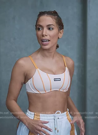 Jessica (played by Anitta) on Elite on Netflix was spotted wearing this sports bra and shorts on Elite on episode 'Por favor, di la verdad' (7x05) in Oct 2023. 's Top is the Fairway Sports Bra by P.E Nation . 's Shorts is the A-Frame Short in Gray Marle by P.E Nation.