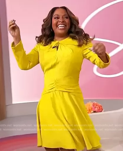 Sherri Shepherd on Sherri on FOX was spotted wearing this yellow twist front dress on Sherri on Oct 30 2023's episode. Sherri's Dress is the Twist Front Dress by Prabal Gurung.