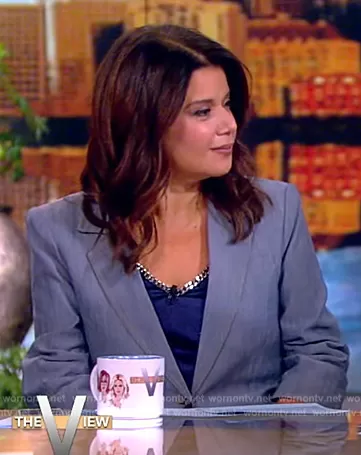 Ana Navarro on The View on ABC was spotted wearing this blue chain trim cami on The View on Oct 30 2023's episode. Ana's Top is the Chain V Neck Top by Generation Love.