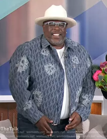 on The Talk on CBS was spotted wearing this printed denim jacket on The Talk on Oct 31 2023's episode. 's Jacket is the Zipped Blouson Tears by Dior.