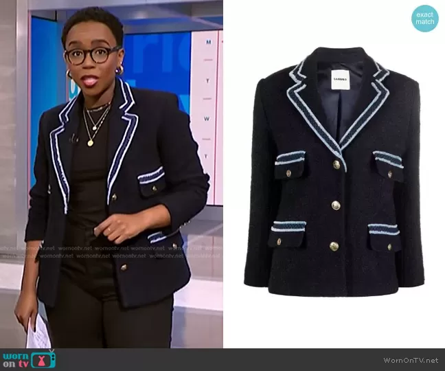 Sandro Tweed Jacket with Contrasting Trim worn by Zinhle Essamuah on NBC News Daily