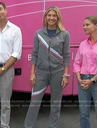 Amanda Kloots on The Talk on CBS was spotted wearing this gray stripe hoodie on The Talk on Oct 30 2023's episode. Amanda's Jacket is the Colorblock Jacket by Aviator Nation.