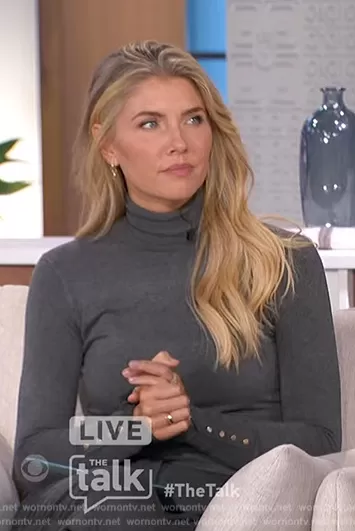 Amanda Kloots on The Talk on CBS was spotted wearing this gray turtleneck on The Talk on Nov 01 2023's episode. Amanda's Sweater is the Basic Turtleneck Knit Sweater by Zara.