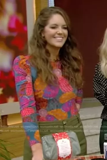 Monica Mangin on Live with Kelly and Mark on Disney ABC Home Entertainment was spotted wearing this floral print bodysuit on Live with Kelly and Mark on Nov 02 2023's episode. Monica's Bodysuit is the Heart Daisy Bodysuit by Farm Rio.