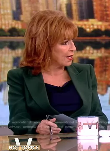 Joy Behar on The View on ABC was spotted wearing this green velvet blazer on The View on Nov 02 2023's episode. Joy's Blazer is the Velvet Blazer by Elie Tahari.