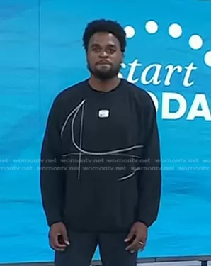 on Today on NBC was spotted wearing this black sweatshirt on Today on Nov 06 2023's episode. 's Sweater is the French Terry Cotton Blend Crewneck Sweatshirt by Nike.