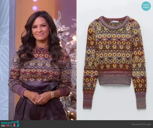 Zara Jacquard Knit Sweater worn by Rocsi Diaz on Good Morning America