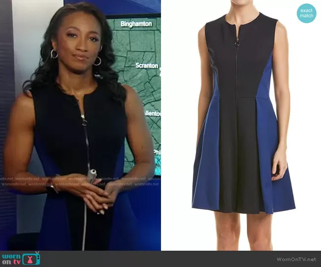 Brittany Bell on Good Morning America on ABC was spotted wearing this black and blue zip front dress on Good Morning America on Sep 29 2025's episode. Brittany's Dress is the Embeline Dress by Elie Tahari.