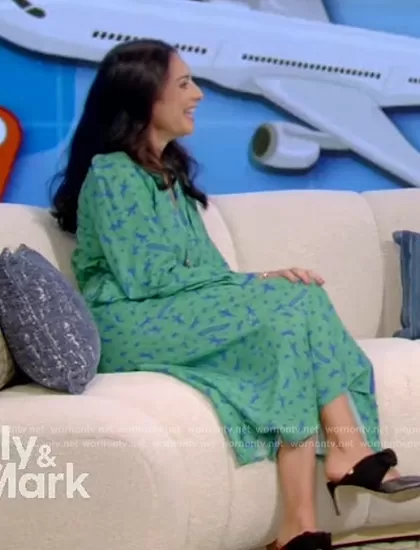 on Live with Kelly and Mark on Disney ABC Home Entertainment was spotted wearing this green floral print dress on Live with Kelly and Mark on Nov 08 2023's episode. 's Dress is the Dress in Lawn by Longchamp.