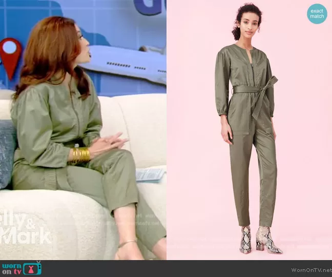 on Live with Kelly and Mark on Disney ABC Home Entertainment was spotted wearing this khaki jumpsuit on Live with Kelly and Mark on Nov 09 2023's episode. 's Jumpsuit is the Sateen Jumpsuit by Rebecca Taylor.