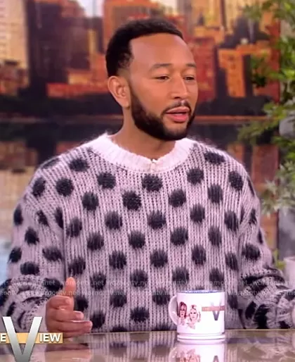 on The View on ABC was spotted wearing this gray polka dot mohair sweater on The View on Nov 09 2023's episode. 's Sweater is the White Mohair Jumper with Polka Dots by Marni.