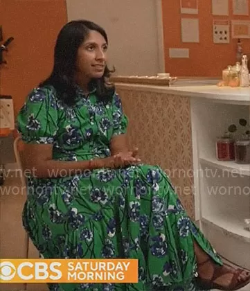 on CBS Mornings on CBS was spotted wearing this green floral midi dress on CBS Mornings on Nov 12 2023's episode. 's Dress is the Erica Dress by Diane von Furstenberg .
