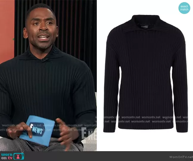 Emporio Armani split-neck ribbed-knit jumper worn by Justin Sylvester on E! News