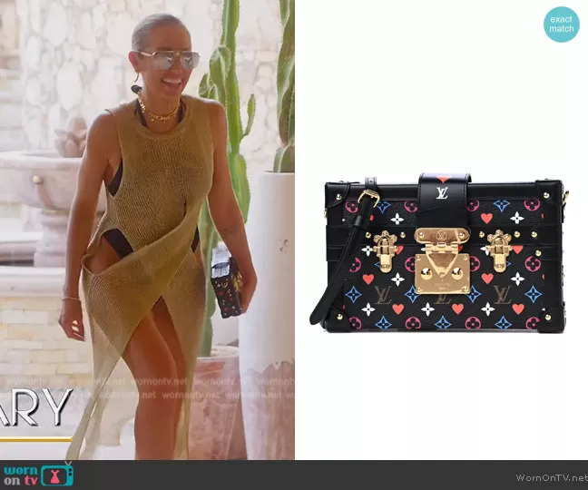 Mary Fitzgerald on Selling Sunset on Netflix was spotted wearing this black LV monogram bag on Selling Sunset on episode 'Oppenheim Wine' (7x08) in Nov 2023. Mary's Bag is the Game On Petite Malle Black by Louis Vuitton.