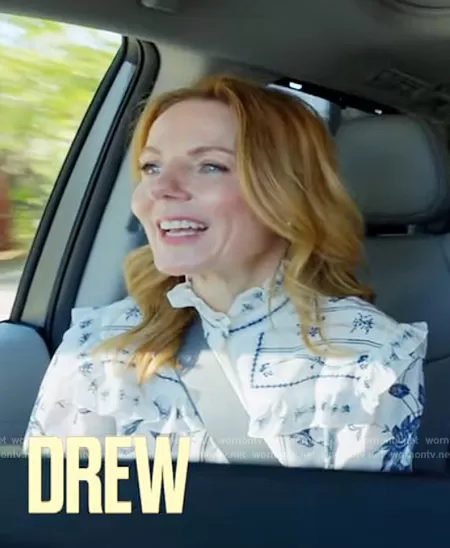 Erdem Silk Ruffle Blouse worn by Geri Halliwell on The Drew Barrymore Show