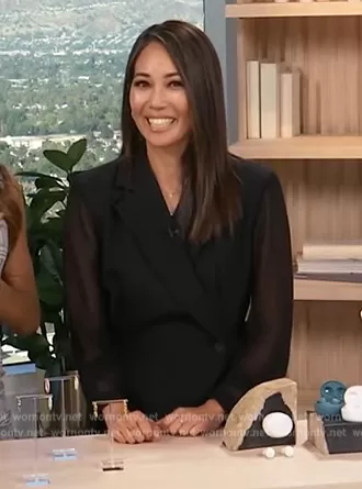 on Access Hollywood on NBC was spotted wearing this Diane Mizota’s black sheer sleeve blazer dress on Access Hollywood on Nov 14 2023's episode. 's Dress is the Wraparound Dress by Sandro.