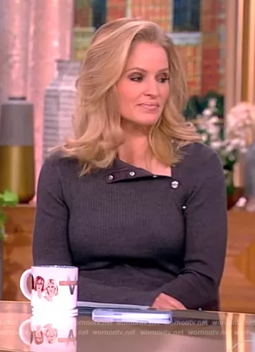 Sara Haines on The View on ABC was spotted wearing this gray sweater dress on The View on Nov 15 2023's episode. Sara's Dress is the Ravie Rib Knit Dress by Maje.