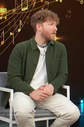 on Access Hollywood on NBC was spotted wearing this green jacket on Access Hollywood on Nov 15 2023's episode. 's Jacket is the Shirt Jacket in Cashmere by Theory.