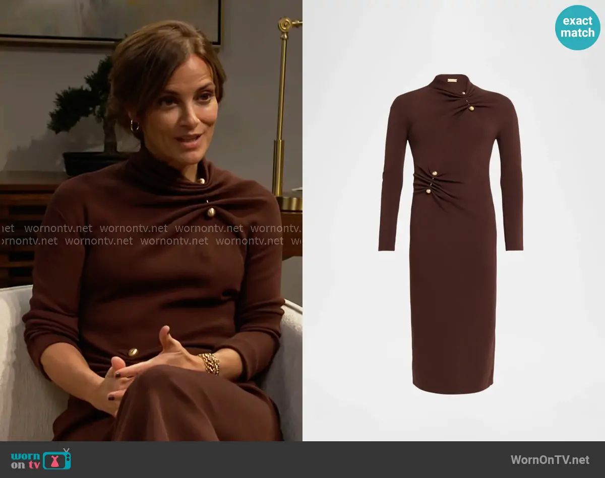 In a captivating and slightly awkward moment on B&B, Hope made a striking appearance wearing a Showstopper robe by Flora Nikrooz. The black robe, featuring sheer mesh sleeves adorned with tiny dots, exudes sheer elegance. What makes this choice even more intriguing is that it's not the first time it's graced the show's screen – both Steffy and Zoe have previously donned the same mesmerizing robe. With its short length and sheer details, this robe has become an iconic piece that's sure to leave a lasting impression on B&B fans and fashion enthusiasts alike.