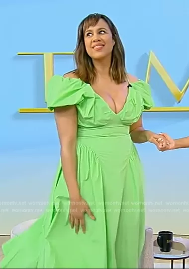on Tamron Hall Show on ABC was spotted wearing this green dress on Tamron Hall Show on Nov 16 2023's episode. 's Dress is the Midi Dress by Rejina Pyo.